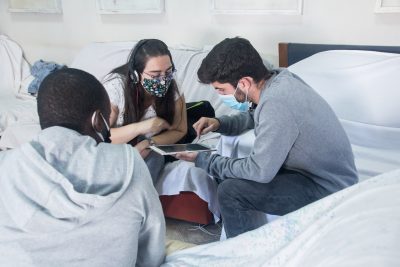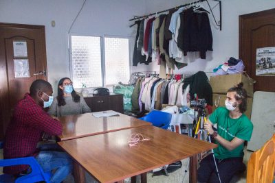 La convivencia -que hasta el momento había sido de manera online- se materializó en una comida y en un rato de compartir vivencias en el centro de día de ASNUCI. Este centro se ha convertido en un lugar donde hacer comunidad, un espacio donde se encuentran aquellas personas que no viven en condiciones dignas, donde pueden encontrar un punto de ducha y aseo, una zona de descanso o un recoger algún material que otra persona haya donado.